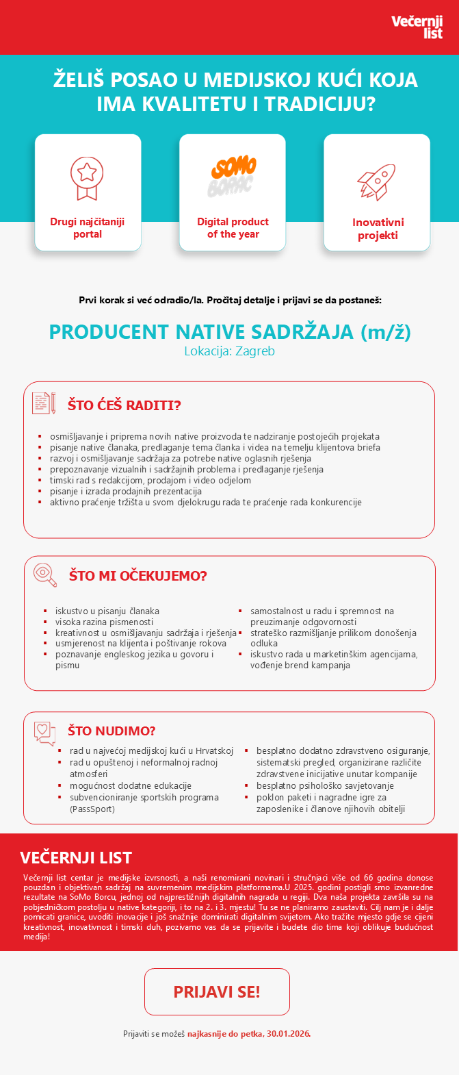 Vaše podatke koristit ćemo u svrhu procjene kandidata, testiranja i komunikacije vezano uz prijavu na natječaj.