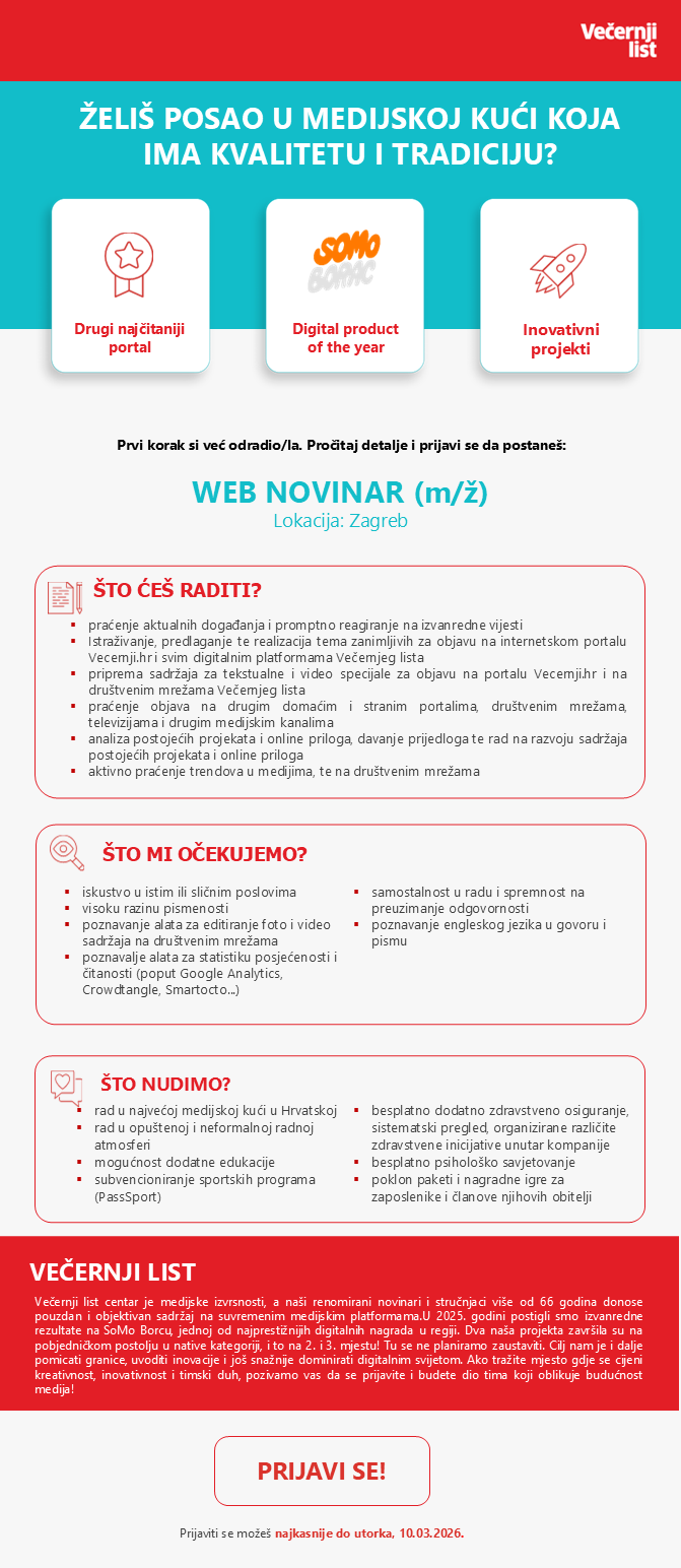 Vaše podatke koristit ćemo u svrhu procjene kandidata, testiranja i komunikacije vezano uz prijavu na natječaj.